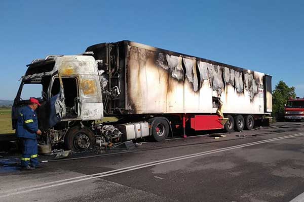 Πατρών-Πύργου: Νταλίκα τυλίχθηκε στις φλόγες στη Γαστούνη [PHOTOS]