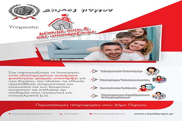 Δήμος Πύργου: Νέα δεδομένα στην υποστήριξη των δημοτών με την ηλεκτρονική πλατφόρμα #menoumespitidimospirgou