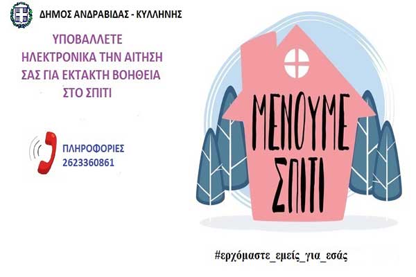 Δήμος Ανδραβίδας-Κυλλήνης: «Ας μείνουμε Σπίτι - Ερχόμαστε εμείς για εσάς!»