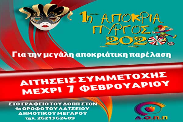 Πύργος-1η Αποκριά 2020: Ολοκληρώνονται οι συμμετοχές για την παρέλαση