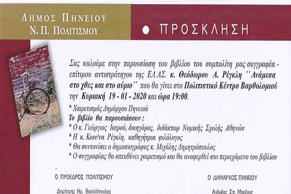 Δήμος Πηνειού: Το Σάββατο η παρουσίαση βιβλίου του Μπάμπη Αρώνη «ΤΟ ΠΑΡΑΒΑΝ»