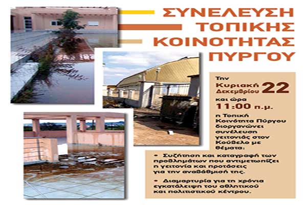 Η Τοπική Κοινότητα Πύργου διοργανώνει την Κυριακή συνέλευση γειτονιάς στον Κούβελο