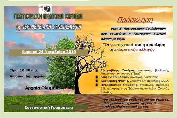 Αρχ.Ολυμπία: Την Κυριακή η 1η περιφερειακή συνδιάσκεψη της Γεωτεχνικής Ενωτικής Κίνησης-Μελέτη της καθίζησης στην Καυκωνία