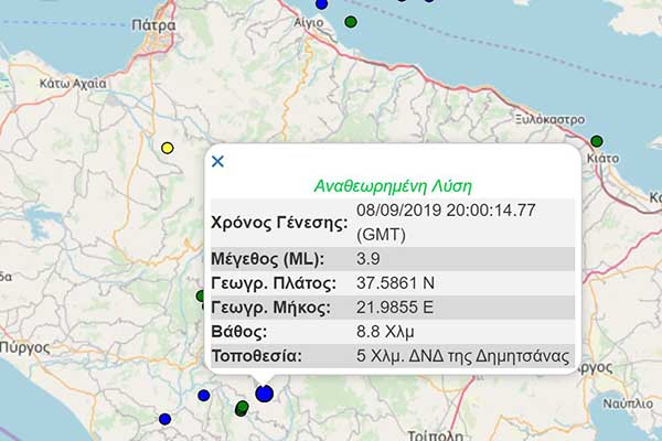Ηλεία: Αισθητός σεισμός 3,9 Ρίχτερ - Κοντά στη Δημητσάνα το επίκεντρο