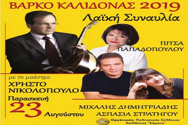 Πολιτιστικός Σύλλογος Καλίδονας "Σάρενα": Λαϊκή Συναυλία με Χρήστο Νικολόπουλο και Πίτσα Παπαδοπούλου στο Βαρκό Καλίδονας