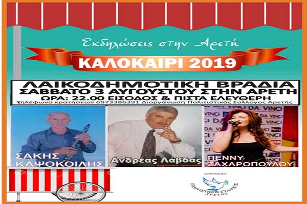 Σήμερα Σάββατο '' Η γιορτή της Αρετής'' με λαϊκοδημοτική βραδιά