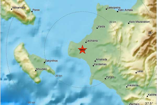 Ηλεία: Αισθητός σεισμός 3,9 Ρίχτερ - Κοντά στα Λεχαινά το επίκεντρο