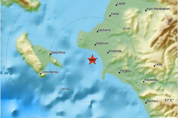 Ηλεία: Αισθητός σεισμός 4,1 Ρίχτερ - Νοτιοδυτικά της Αμαλιάδας το επίκεντρο