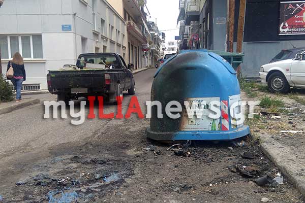Πύργος: Φωτιά σε κάδους στο κέντρο της πόλης [PHOTOS]