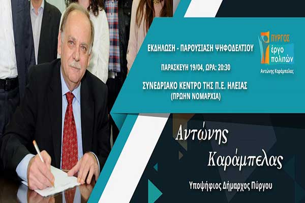 «ΠΥΡΓΟΣ-ΕΡΓΟ ΠΟΛΙΤΩΝ»: Αύριο Παρασκευή η Εκδήλωση-παρουσίαση ψηφοδελτίου του Αντ. Καράμπελα