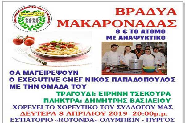 «Πύργος – ΟΛΟΙ ΜΑΖΙ»: «Γιορτή Μακαρονάδας» τη Δευτέρα για φιλανθρωπικό σκοπό