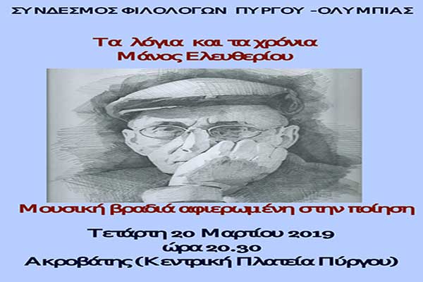 Σύνδεσμος Φιλολόγων Πύργου-Ολυμπίας: Μουσική βραδιά αφιερωμένη στην ποίηση την Τετάρτη 20 Μαρτίου