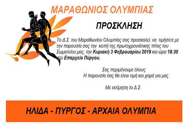 Πύργος: Το Σωματείο "Μαραθώνιος Ολυμπίας" κόβει σήμερα την πίτα του