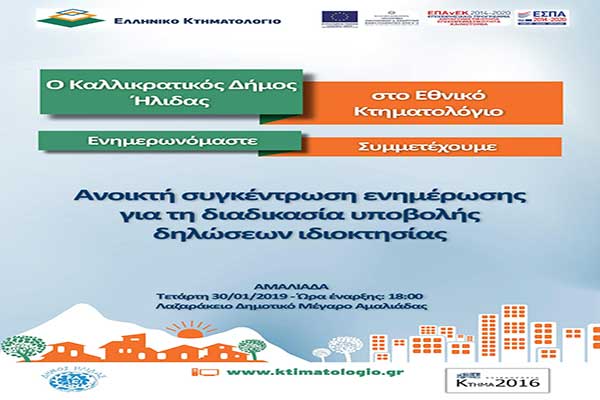 Αμαλιάδα: Ενημερωτική ημερίδα στις 30 Ιανουαρίου για την έναρξη κατάθεσης υποβολής δηλώσεων Κτηματολογίου