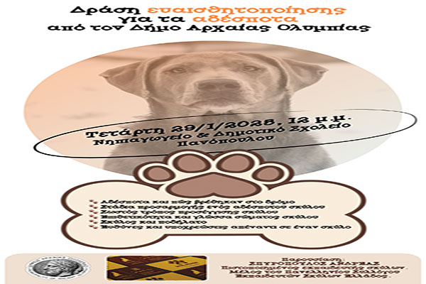 Δήμος Αρχαίας Ολυμπίας: Στο Πανόπουλο η επόμενη δράση ευαισθητοποίησης για τα αδέσποτα
