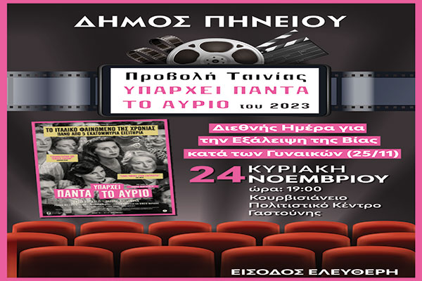 Δράση για την Παγκόσμια Ημέρα Εξάλειψης της Βίας κατά των Γυναικών από τον Δήμο Πηνειού