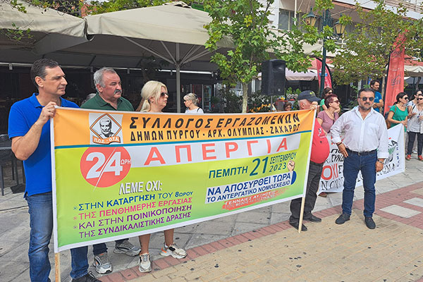 Ο Σύλλογος Εργαζομένων Δ.Πύργου - Αρχ.Ολυμπίας - Ζαχάρως συμμετέχει στην 24ωρη Πανελλαδική απεργία της Τετάρτης 20/11