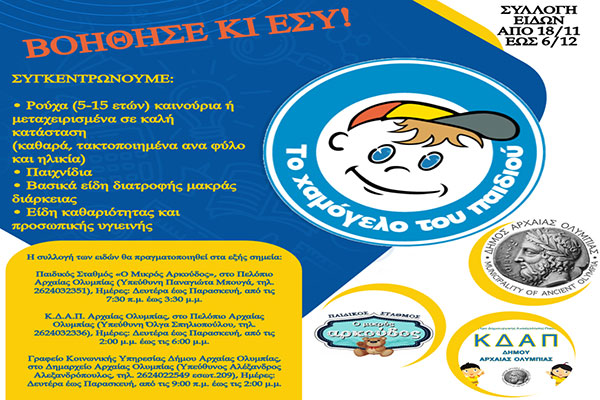 Αρχαία Ολυμπία: Συγκέντρωση Ρούχων, Παιχνιδιών, Τροφίμων & Ειδών Πρώτης Ανάγκης για το «Χαμόγελο του Παιδιού»