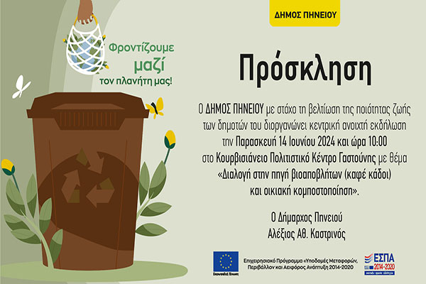 Δήμος Πηνειού: Ημερίδα για τη διαχείριση βιοαποβλήτων στο Κουρβισιάνειο