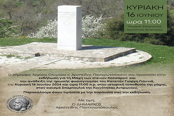 Δήμος Αρχαίας Ολυμπίας-16 Ιουνίου: Τιμάμε τον ήρωα Καπετάν Γιαννιά στην Σπαρτουλιά της Κοινότητας Αντρωνίου