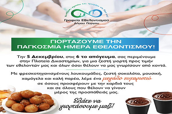 Δήμος Πύργου: Μήνυμα για την Παγκόσμια Ημέρα Εθελοντισμού