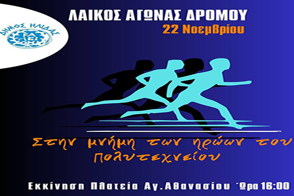 Δήμος Ήλιδας: Το Σάββατο 22 Νοεμβρίου 2025 θα διεξαχθεί ο ετήσιος Λαϊκός Αγώνας Δρόμου στην πόλη της Αμαλιάδας, στη μνήμη των ηρώων του Πολυτεχνείου