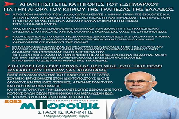 ΜΗΝΥΜΑ ΔΗΜΑΡΧΟΥ ΠΥΡΓΟΥ