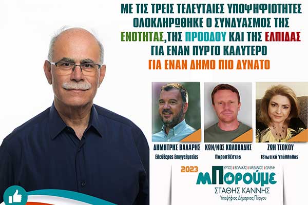 Οι τελευταίοι τρεις υποψήφιοι με την παράταξη «ΜΠΟΡΟΥΜΕ» του Στάθη Καννή για τον δήμο Πύργου