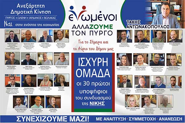 Οι 30 πρώτοι υποψήφιοι του συνδυασμού "Ενωμένοι αλλάζουμε τον Πύργο"