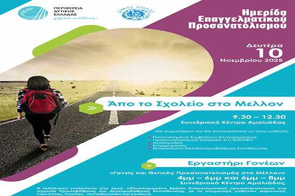 «Από το Σχολείο στο Μέλλον» – Ημερίδα Επαγγελματικού Προσανατολισμού για μαθητές γυμνασίου και λυκείου στο Συνεδριακό Κέντρο Αμαλιάδας
