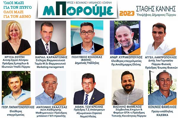 10 υποψήφιοι με την παράταξη «ΜΠΟΡΟΥΜΕ» του Στάθη Καννή για τον Δήμο Πύργου