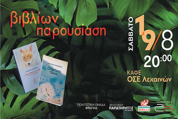 Παρουσίαση βιβλίων του Άγγελου Ευθ. Αγγελόπουλου στο καφέ ΟΣΕ Λεχαινών στις 19/8