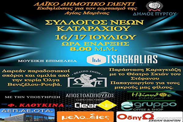 Διήμερες εκδηλώσεις για τον εορτασμό της Αγ. Μαρίνας από τον Δήμο Πύργου και το Σύλλογο Νέων Καταραχίου