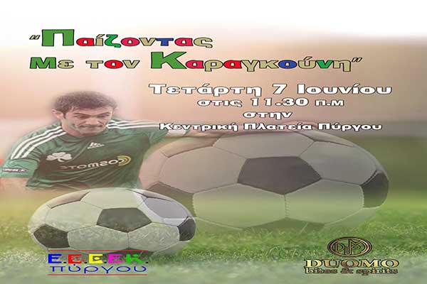 Πύργος: Οι μαθητές του ΕΕΕΕΚ Πύργου και του 2ου Δημοτικού παίζουν μπάλα με τον Γιώργο Καραγκούνη στην Κεντρική Πλατεία
