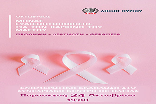 Δήμος Πύργου: "Πρόληψη – Διάγνωση – Θεραπεία" - Ενημερωτική Εκδήλωση για τον Καρκίνο του Μαστού