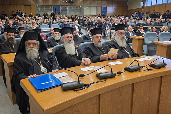 Ο Αντιπρύτανης του Πανεπιστημίου Αθηνών κ. Ευάγγελος Καραγιάννης, ο οποίος εξήρε την πνευματική ακτινοβολία του ιεράρχη.