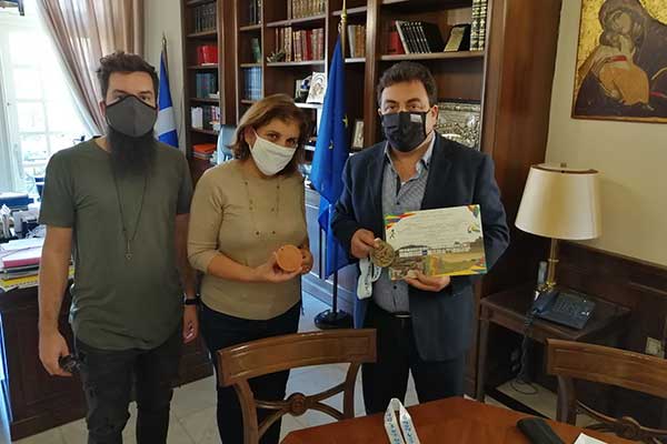 η πρόεδρος της Συμπολιτείας Ήλιδας-Ολυμπίας κ.Σοφία Χίντζιου-Κοντογιάννη στο δημαρχείο του Πύργου συναντώντας τον δήμαρχο κ.Παναγιώτη Αντωνακόπουλο προκειμένου να του προσφέρει αναμνηστικά δώρα από τις δράσεις του 5ου Δρόμου Ολυμπιακής Εκεχειρίας που ολοκληρώθηκαν στις 30 Αυγούστου 2020 με μεγάλη επιτυχία.