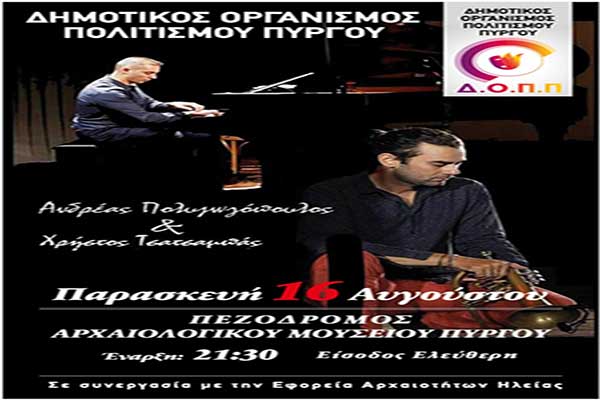 - Πύργος: Αυγουστιάτικη Πανσέληνος στο Αρχαιολογικό Μουσείο με Χρήστο Τσατσαμπά και Ανδρέα Πολυζωγόπουλο