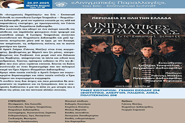 35ο Φεστιβάλ Αρχαίας Ήλιδας: Οι «Αινιγματικές Παραλλαγές» με τους Γιάννη Μπέζο και Πυγμαλίωνα Δαδακαρίδη