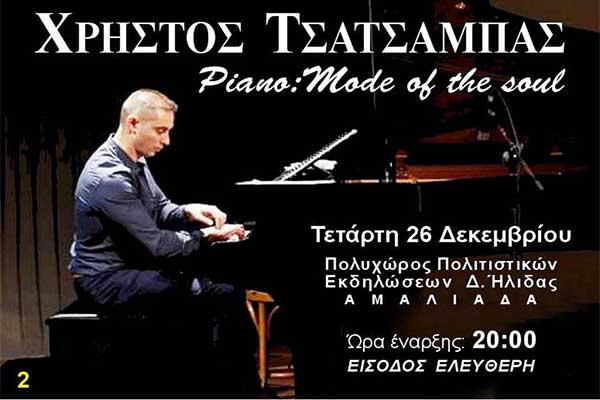 Αμαλιάδα: Απόψε το κοντσέρτο του πιανίστα Χρήστου Τσατσαμπά στον Πολυχώρο Πολιτισμού Ήλιδας