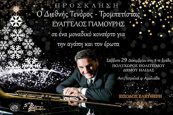 Πολυχώρος Πολιτισμού Δ.Ήλιδας: Αύριο το κοντσέρτο του διεθνούς φήμης τενόρου και τρομπετίστα Ευάγγελου Γιαμούρη