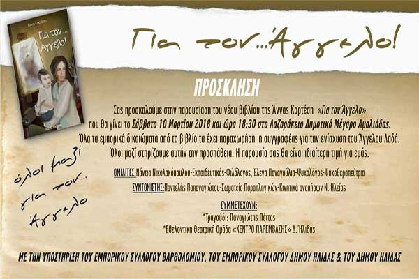 «Για τον… Άγγελο!»: Το Σάββατο η παρουσίαση του νέου βιβλίου της Άννας Κορτέση για τον Άγγελο Λαδά από το Βαρθολομιό