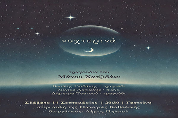 Δήμος Πηνειού: Συναυλία – αφιέρωμα στον Μάνο Χατζιδάκι στο προαύλιο της Παναγίας Καθολικής της Γαστούνης