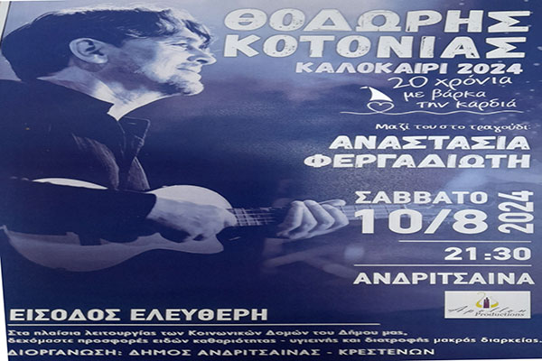 Δήμος Ανδρίτσαινας-Κρεστένων: «Ταξίδι» με τις μελωδίες του Θοδωρή Κοτονιά!