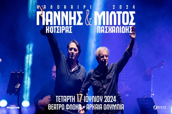 Κερδίστε 5 δωρεάν προσκλήσεις για την συναυλία των Γιάννη Κότσιρα - Μίλτου Πασχαλίδη στις 17 Ιουλίου στο Θέατρο Φλόκα στην Αρχαία Ολυμπία