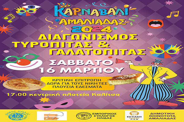 Δήμος Ήλιδας: Το Σάββατο 16 Μαρτίου στην πλατεία Καλίτσα, ο καρναβαλικός διαγωνισμός Τυρόπιτας – Γαλατόπιτας και όλων των παραλλαγών τους