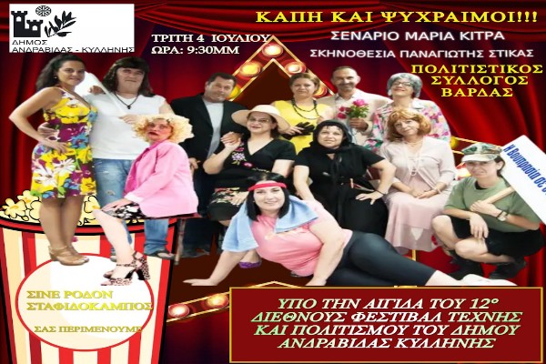 12ο Διεθνές Φεστιβάλ Δήμου Ανδραβίδας-Κυλλήνης: "ΚΑΠΗ ΚΑΙ ΨΥΧΡΑΙΜΟΙ" αύριο στον Σταφιδόκαμπο