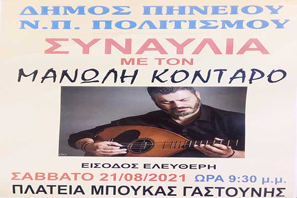 Πλατεία Μπούκας Γαστούνης:«Άρωμα» Κρήτης με τον μοναδικό Μανώλη Κονταρό το Σάββατο 21 Αυγούστου