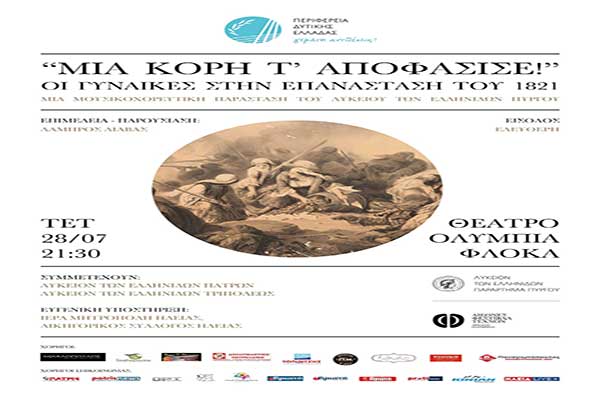Διεθνές Φεστιβάλ Τεχνών Αρχαίας Ολυμπίας – ΠΔΕ: «ΜΙΑ ΚΟΡΗ Τ’ ΑΠΟΦΑΣΙΣΕ!»: Οι γυναίκες στην Επανάσταση του 1821