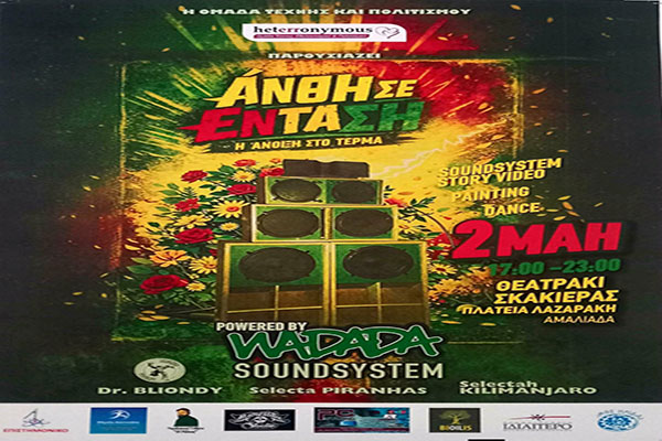 Σάββατο 2 Μαΐου οι Heterronymous φέρνουν μια μουσική εμπειρία γεμάτη ρυθμό, ενέργεια και ελευθερία. Sound System, εικόνα, κίνηση - όλα γίνονται ένα. Από το φως της μέρας μέχρι τη δύση, η μουσική ανθίζει και μας ενώνει. Μαζευόμαστε. Νιώθουμε. Εκφραζόμαστε. Φέρνουμε μαζί μας λουλούδια και....παιδικά χαμόγελα για να δημιουργήσουμε το καλύτερο στεφάνι Άνοιξη σε ένταση. Ζησ' το!! Το όνομα WADADA Sound System προέρχεται από την έννοια του ONE LOVE, μια φιλοσοφία ενότητας, συλλογικότητας και σεβασμού . Η μουσική δεν είναι απλά ο ήχος αλλά ο τρόπος σύνδεσης των ανθρώπων. Το WADADA σχεδιάστηκε και κατασκευάστηκε στην Κέρκυρα το 2018 κι εκεί ξεκίνησε τη δυναμική διαδρομή στη Sound System κουλτούρα. Αργότερα μεταφέρθηκε στην Αθήνα, όπου η ομάδα μεγάλωσε και εξελίχθηκε. Η συμμετοχή σε πολυάριθμες εκδηλώσεις και festivals - καθώς έχει συνεργαστεί με πολλούς καλλιτέχνες από το εξωτερικό - έφεραν και νέες επιρροές. Ο ήχος του WADADA χαρακτηρίζεται από την έμφαση στις χαμηλές συχνότητες, όπως άλλωστε τα περισσότερα sound systems.